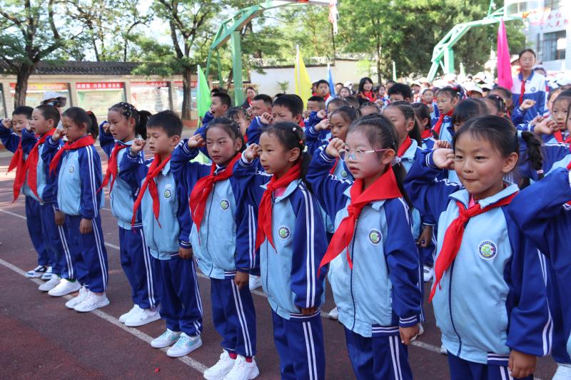 上午8點(diǎn)30分,活動(dòng)正式開始,升國旗、唱國歌、行隊(duì)禮,孩子們激動(dòng)的心情溢于言表。在新隊(duì)員入隊(duì)儀式上,共有138名學(xué)生加入光榮的中國少年先鋒隊(duì)組織,老隊(duì)員們?yōu)樗麄兣宕骷t領(lǐng)巾,鮮艷的紅領(lǐng)巾在新隊(duì)員的胸前飄揚(yáng),也在燦爛的朝陽下熠熠閃光。隨后,該校對(duì)獲得“2022—2023年度“優(yōu)秀少先隊(duì)員”“優(yōu)秀班干部”“紅領(lǐng)巾一星獎(jiǎng)?wù)聵s譽(yù)”的同學(xué)進(jìn)行了表彰。最后,學(xué)校舞蹈社團(tuán)的孩子們?yōu)榇蠹規(guī)砭实母栉璞硌?,把整個(gè)活動(dòng)推向高潮。 (張燕 攝影報(bào)道)