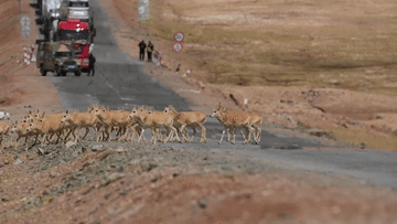 藏羚羊“過(guò)馬路”,車(chē)輛請(qǐng)注意!