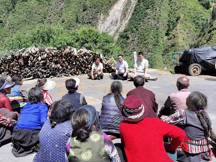 圖為絨壩鄉(xiāng)干部向群眾宣傳防汛知識(shí)。