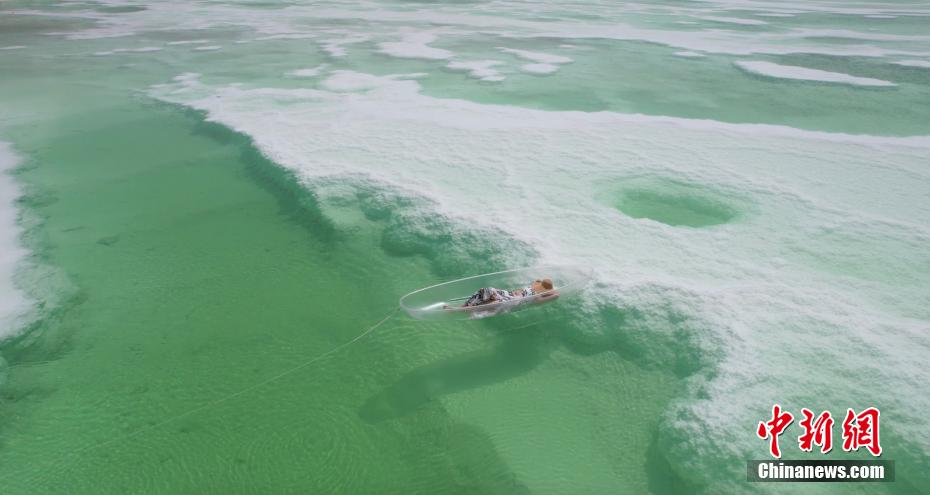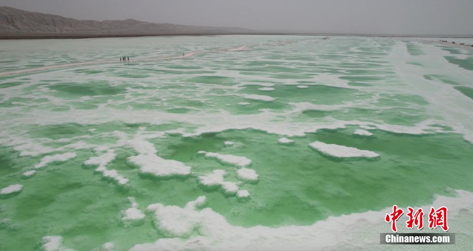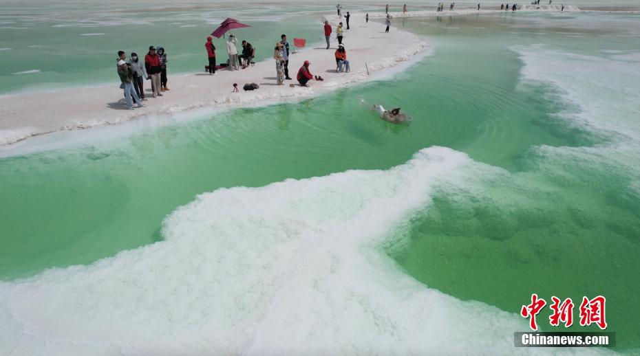 夏日,位于青海海西州茫崖市花土溝鎮(zhèn)的翡翠湖宛如色彩絢麗的油畫被描繪在蒼茫的柴達木盆地上,淡青、翠綠、深綠色的湖水如碎玉散落在大漠戈壁上,充滿生機。茫崖翡翠湖南依昆侖山,北靠阿爾金山,總面積約26平方公里,屬于硫酸鎂亞型鹽湖,由于所含礦物質(zhì)濃度的不同,致使湖面顏色深淺不一。18日,由中新社青海分社,青海省海西州茫崖市委、茫崖市人民政府共同主辦的“赴蒼茫之崖品人間煙火”青?!っQ?023美食大會在茫崖市正式啟動。近日,活動團隊來到茫崖翡翠湖進行拍攝采風。