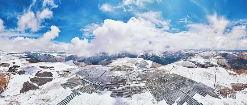 距兩河口水電站約50公里的柯拉一期光伏電站,200多萬(wàn)塊光伏板將最高海拔4600米的扎拉托桑山裝點(diǎn)成一片“光伏?!薄?/p>