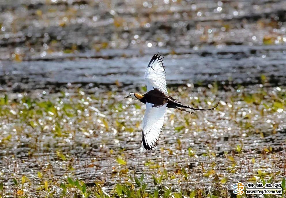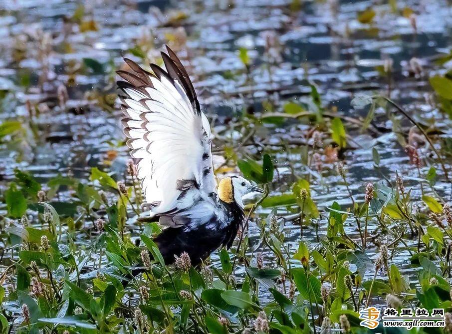 水雉在繁殖期,有金黃褐白羽色和長長尾羽,水上盈盈、姿態(tài)翩翩,又有“凌波仙子”的美稱。