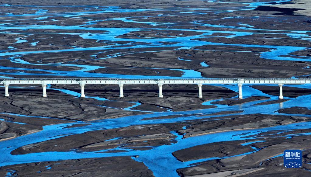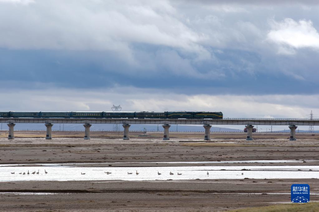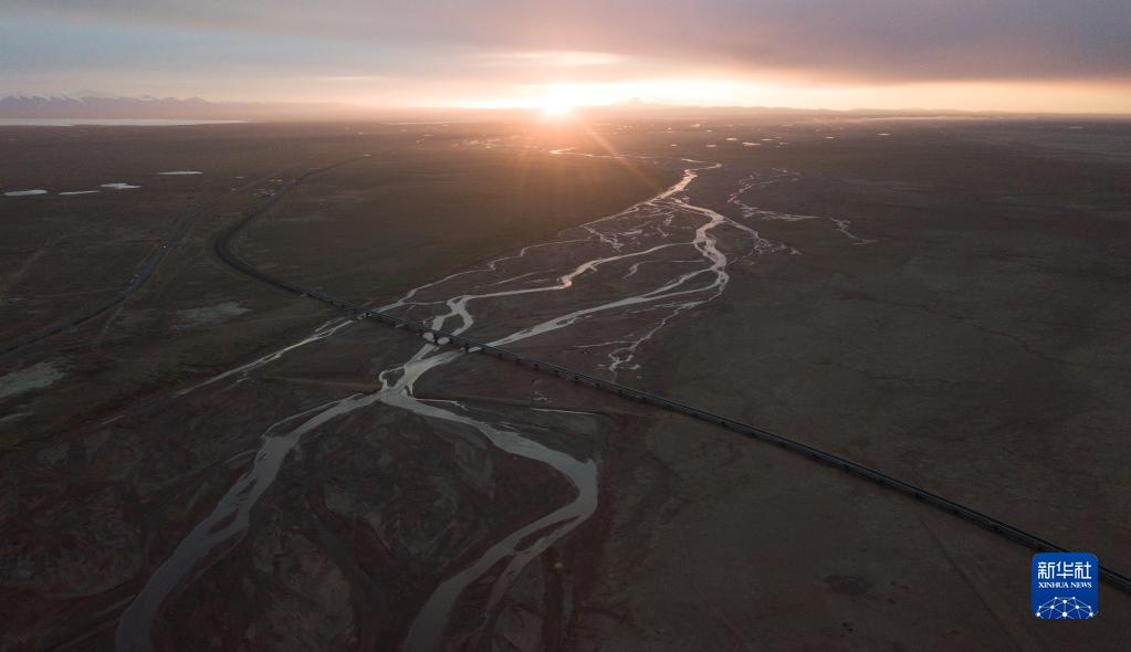 6月16日,一列火車經(jīng)過長江源地區(qū)的楚瑪爾河。新華社記者 金立旺 攝