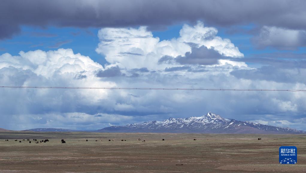 6月14日,在長江源地區(qū)的沱沱河附近,一群牦牛在覓食。新華社記者 張鋮 攝