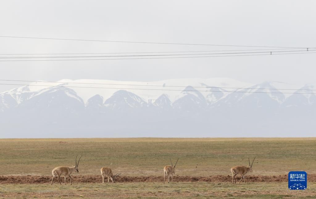 6月15日,在長江源地區(qū)的楚瑪爾河附近,幾只藏羚羊在覓食。新華社記者 金立旺 攝