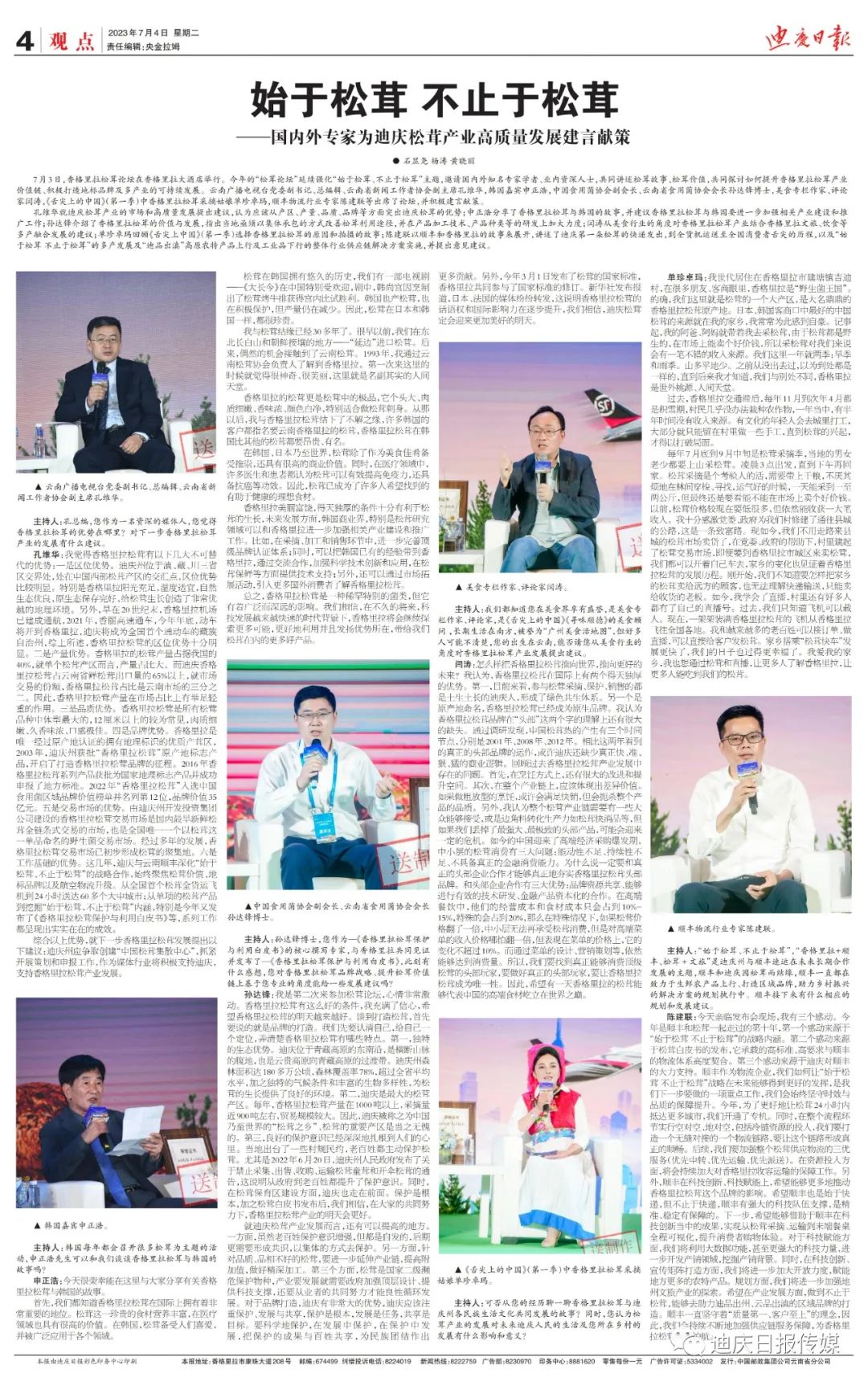 【關(guān)注】明日出版的《迪慶日報》第四版將整版刊登國內(nèi)外專家對迪慶松茸產(chǎn)業(yè)高質(zhì)量發(fā)展給出的建議