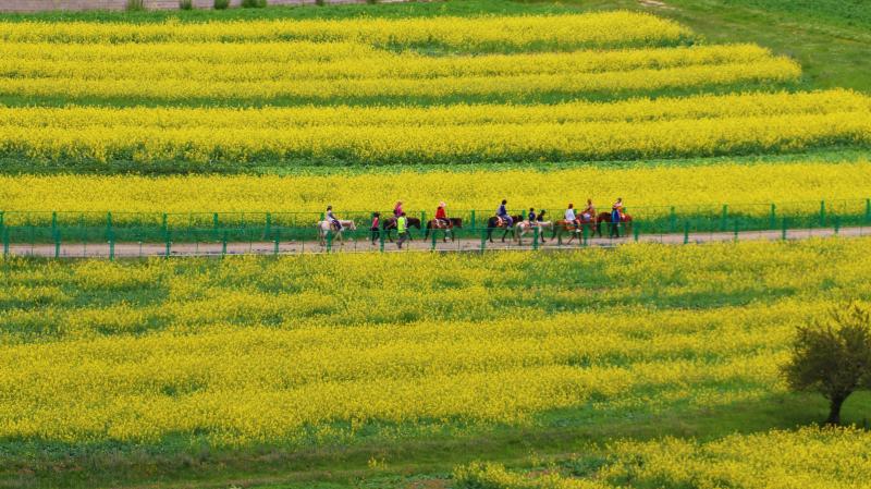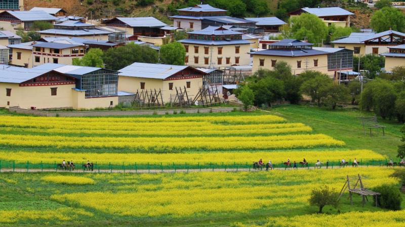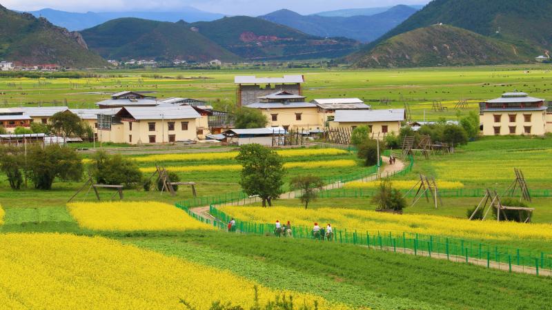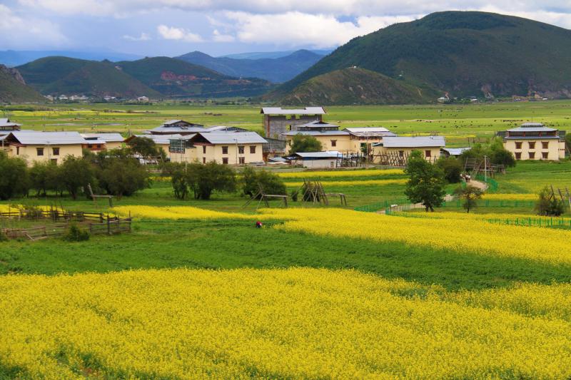 迪慶香格里拉納帕海的油菜花田進入盛花期