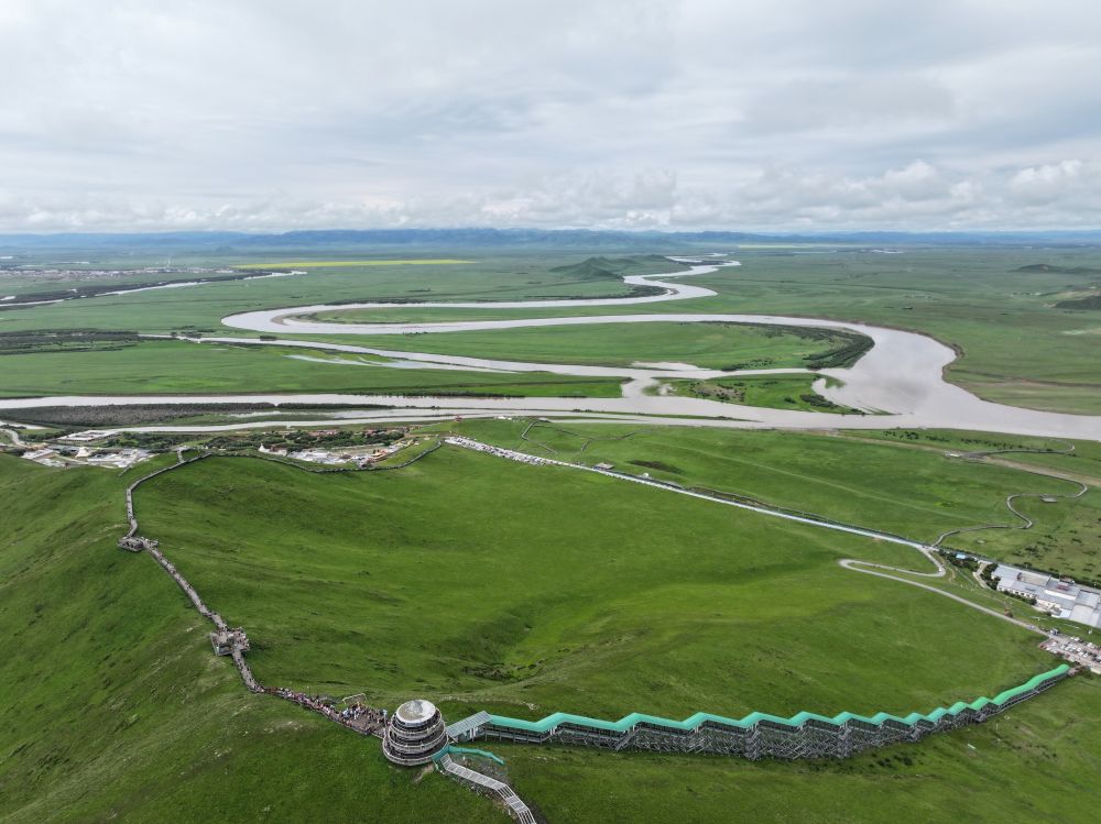 這是7月14日拍攝的若爾蓋縣黃河九曲第一灣景區(qū)(無人機(jī)照片)。新華社記者 邢拓 攝