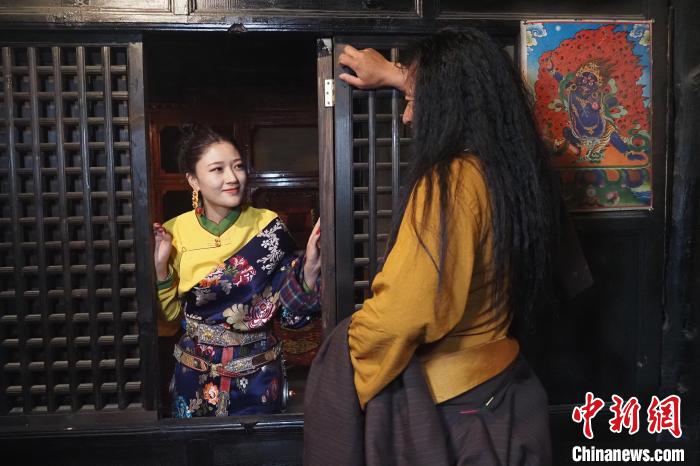 圖為蘭達(dá)百長碉樓內(nèi)部身穿藏族服飾的當(dāng)?shù)鼐用?。高均?攝