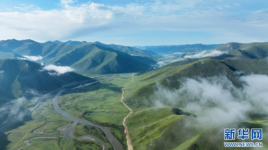 圖為在青海省果洛藏族自治州甘德縣境內(nèi)拍攝的夏日風(fēng)光(無人機照片)。新華網(wǎng) 宋忠勇 攝