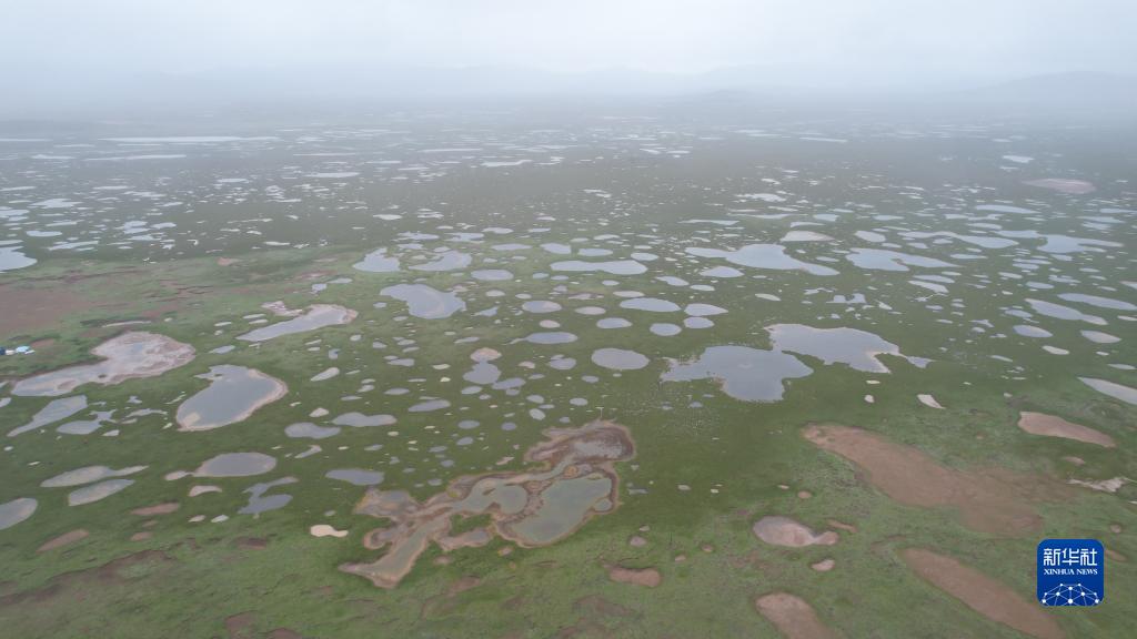 大小湖泊星羅棋布的當(dāng)曲濕地(7月24日攝,無人機(jī)照片)。新華社記者 劉詩平 攝