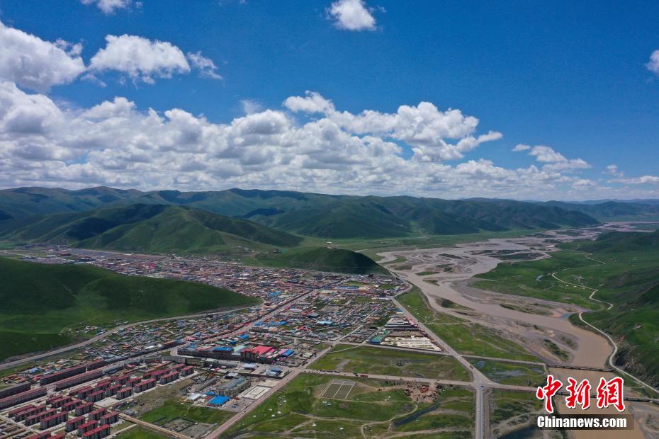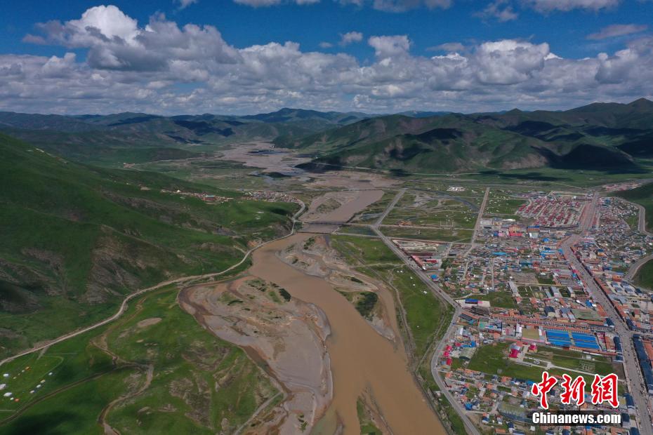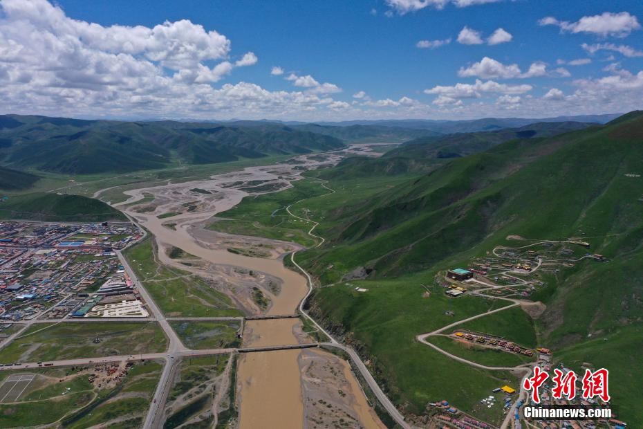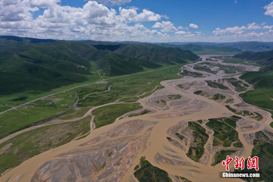 7月28日,航拍青海省果洛藏族自治州達(dá)日縣黃河辮狀水系。果洛州達(dá)日縣平均海拔在4200米以上,盛夏時(shí)節(jié),連綿的山巒披上“綠毯”,黃河流經(jīng)其境內(nèi)后,在開(kāi)闊平緩的河道中數(shù)十條水流時(shí)而相匯時(shí)而分離,交織出巨型的辮狀水系,在群山和城鎮(zhèn)中蜿蜒流淌,形成獨(dú)特的高原壯美山河圖。
