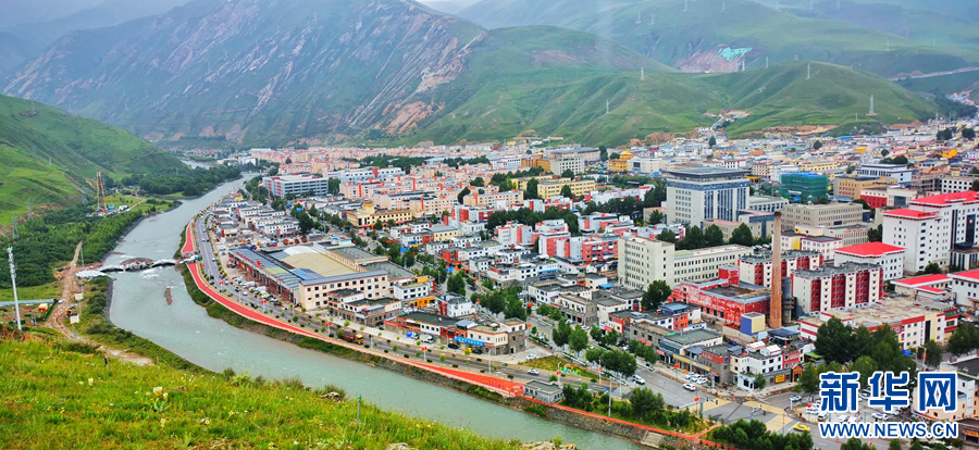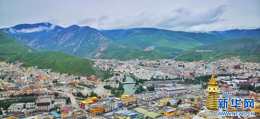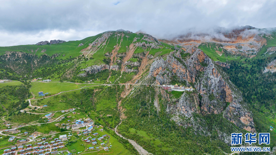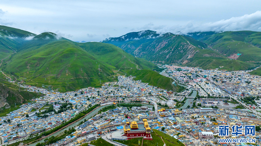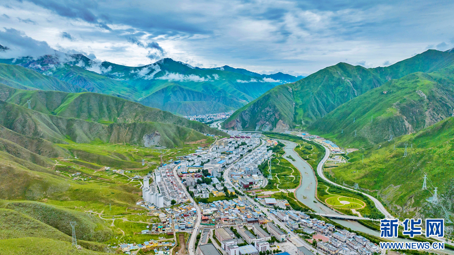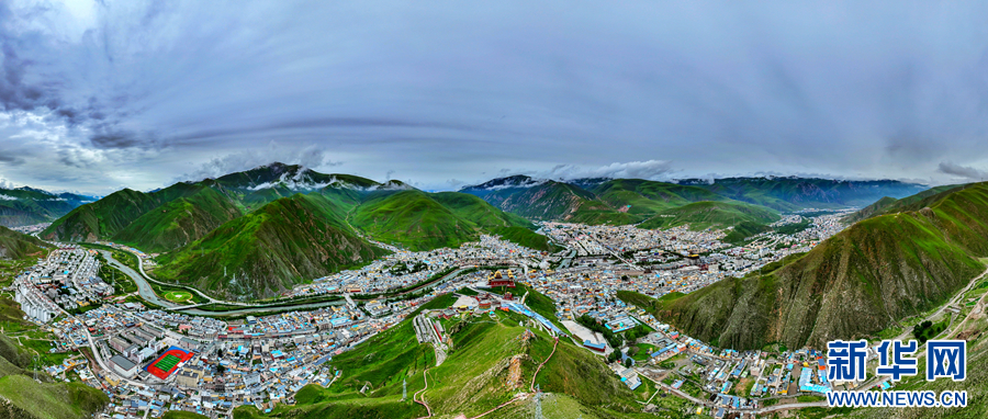 圖為青海省玉樹藏族自治州玉樹市的夏日風光(無人機全景照片)。新華網(wǎng) 宋忠勇 攝