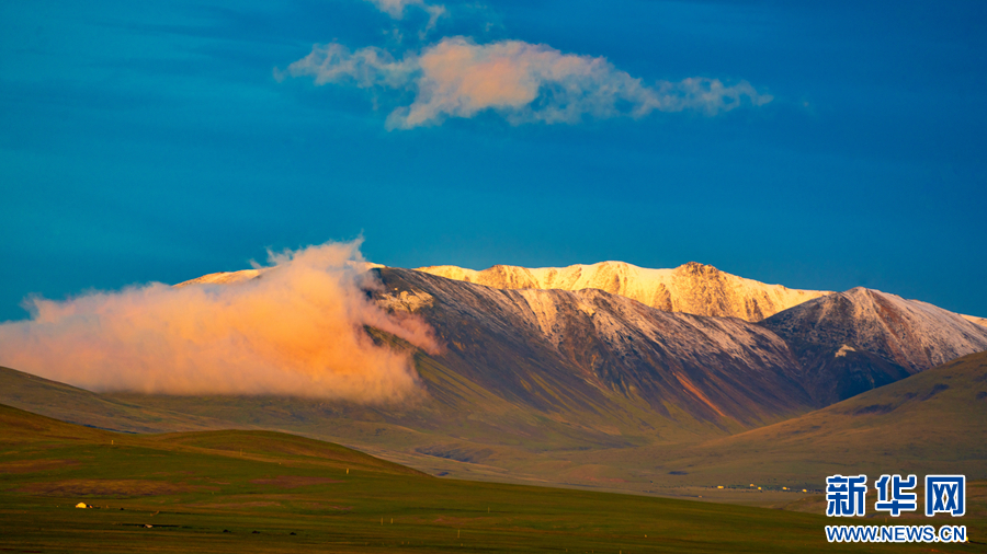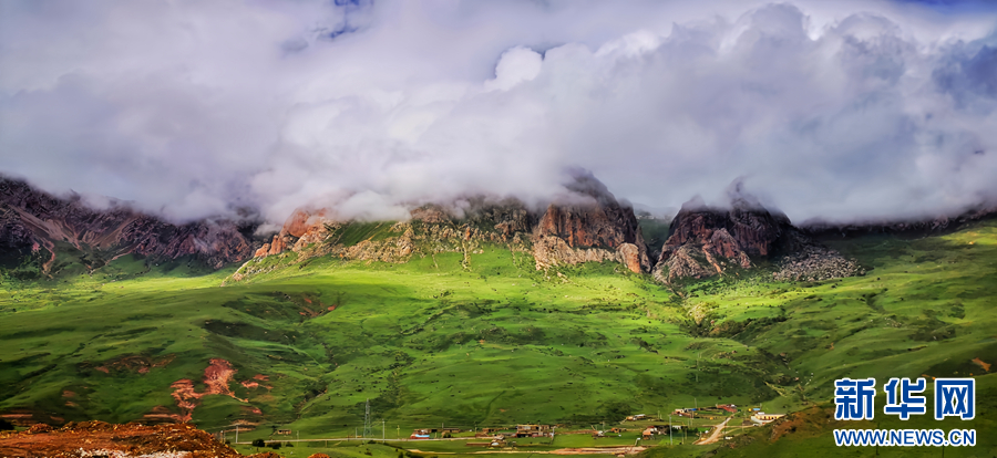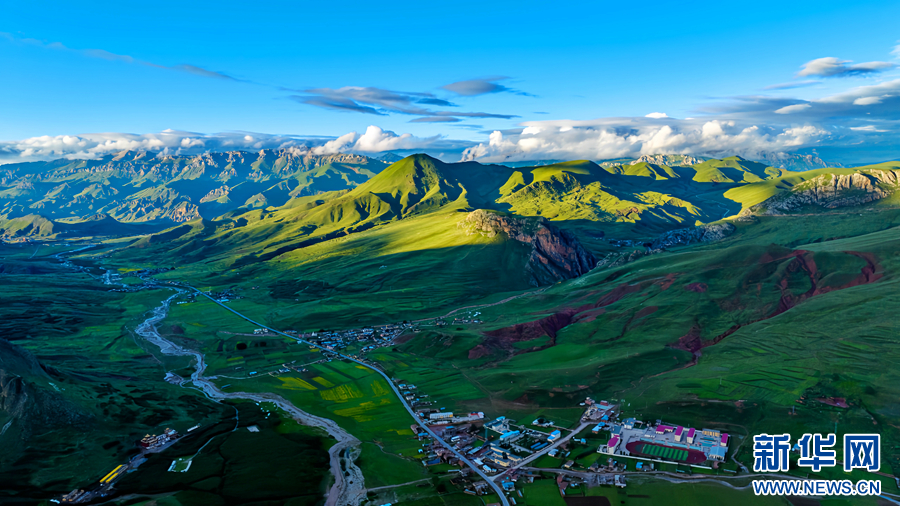 時值盛夏,青海省玉樹藏族自治州景色怡人,群山和草原在藍天白云的映襯下構成壯美的畫卷。