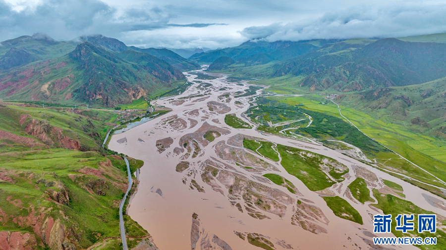 圖為在青海省玉樹藏族自治州囊謙縣境內(nèi)拍攝的夏日風光(無人機照片)。新華網(wǎng) 宋忠勇 攝