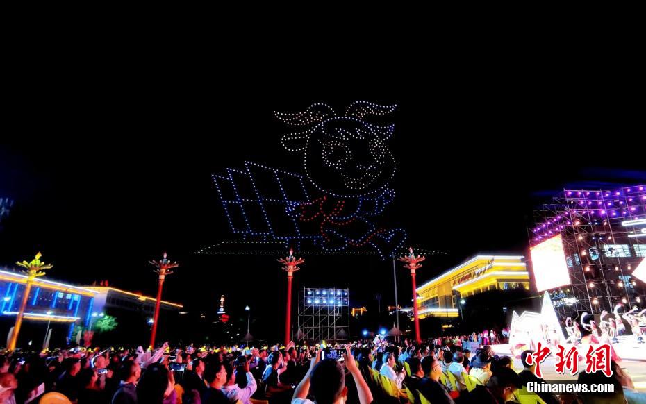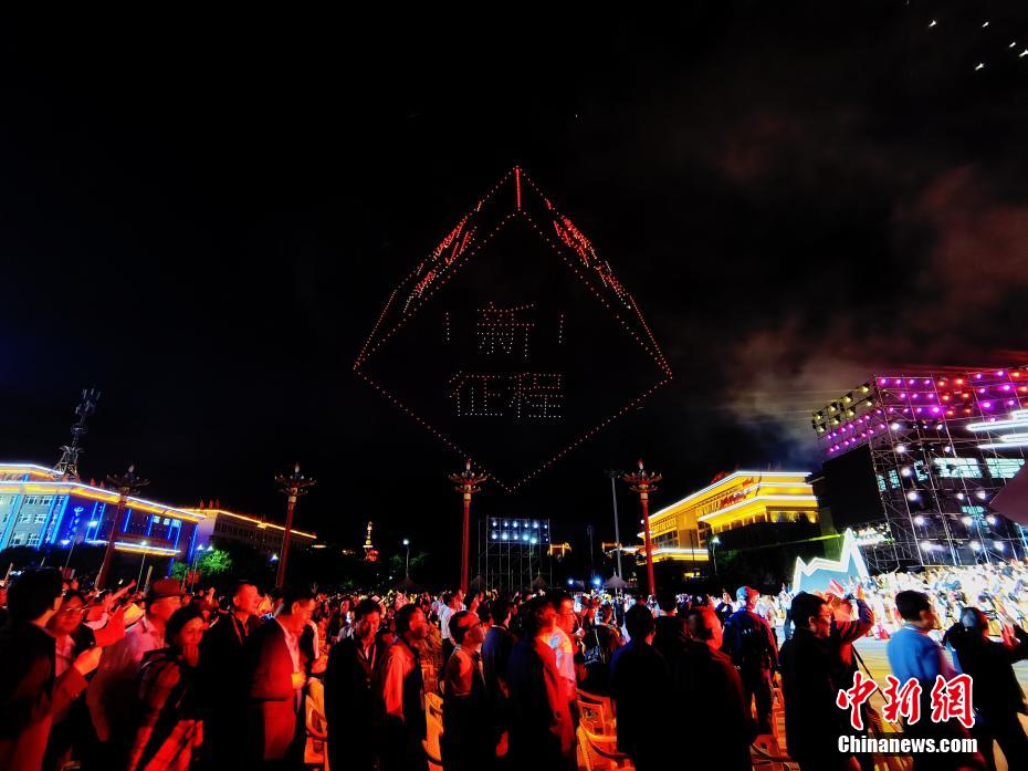 慶祝青海海南州成立70周年 無(wú)人機(jī)秀點(diǎn)亮高原夜空