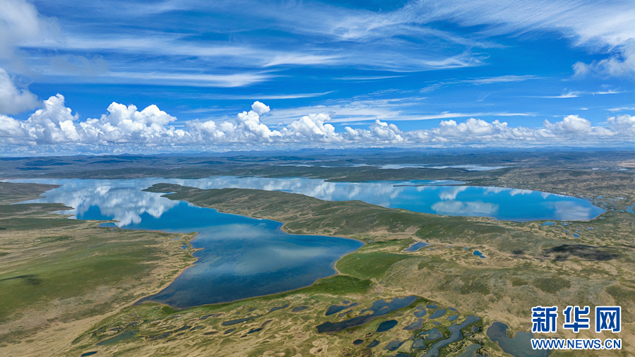 在青海省果洛藏族自治州瑪多縣境內(nèi)拍攝的星星海(無(wú)人機(jī)照片)。新華網(wǎng) 宋忠勇 攝