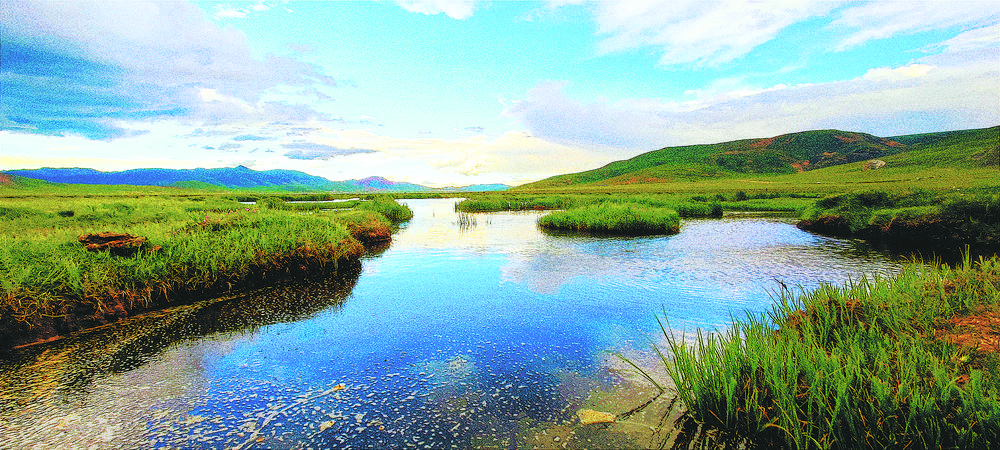 藍(lán)天白云下的隆寶灘國(guó)際重要濕地寧?kù)o而美麗。