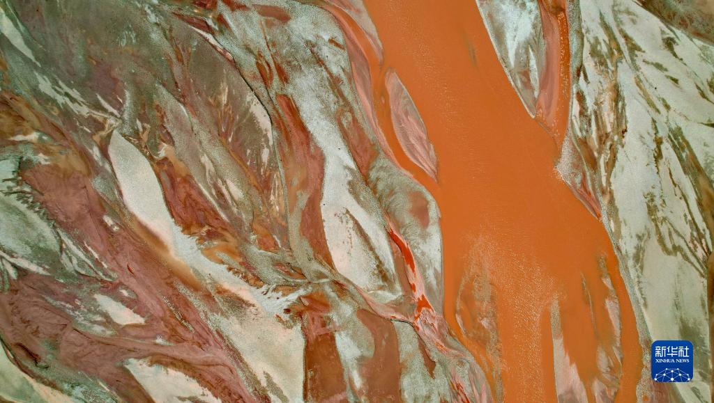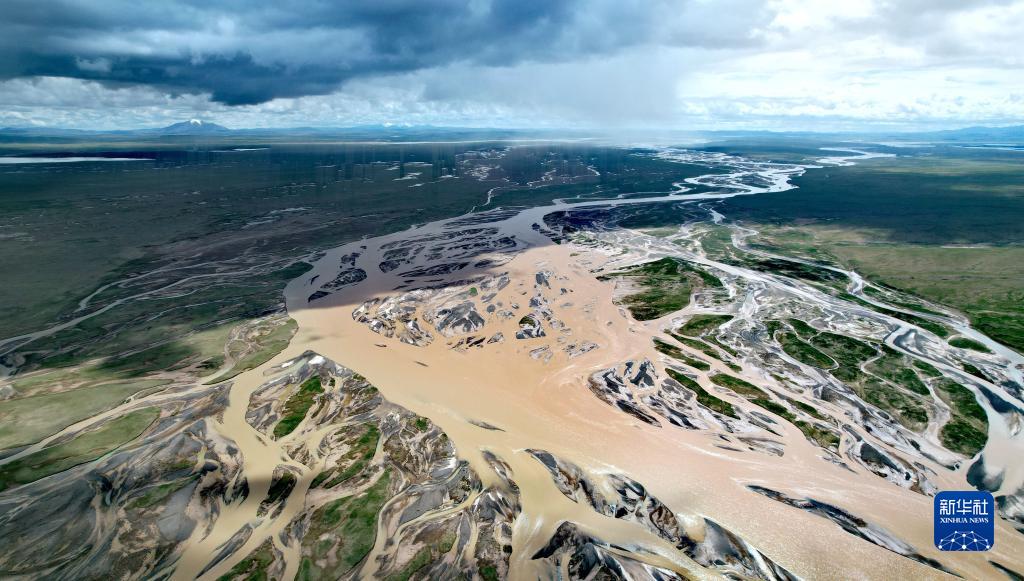 在沱沱河與當(dāng)曲匯合處的囊極巴隴拍攝的辮狀河道(7月27日攝,無(wú)人機(jī)照片)。新華社記者 劉詩(shī)平 攝