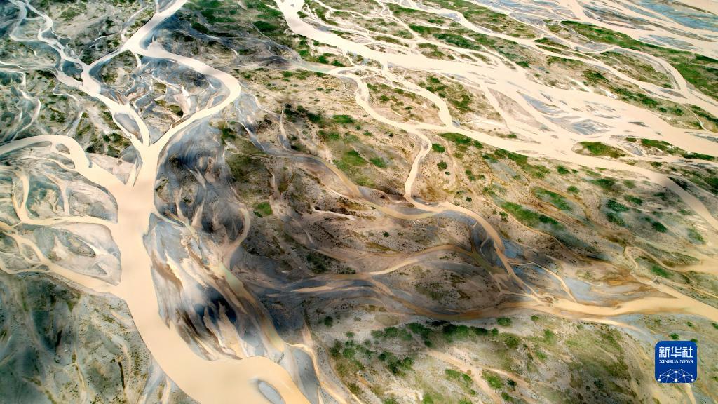通天河支流的辮狀河道(7月26日攝,無(wú)人機(jī)照片)。新華社記者 劉詩(shī)平 攝