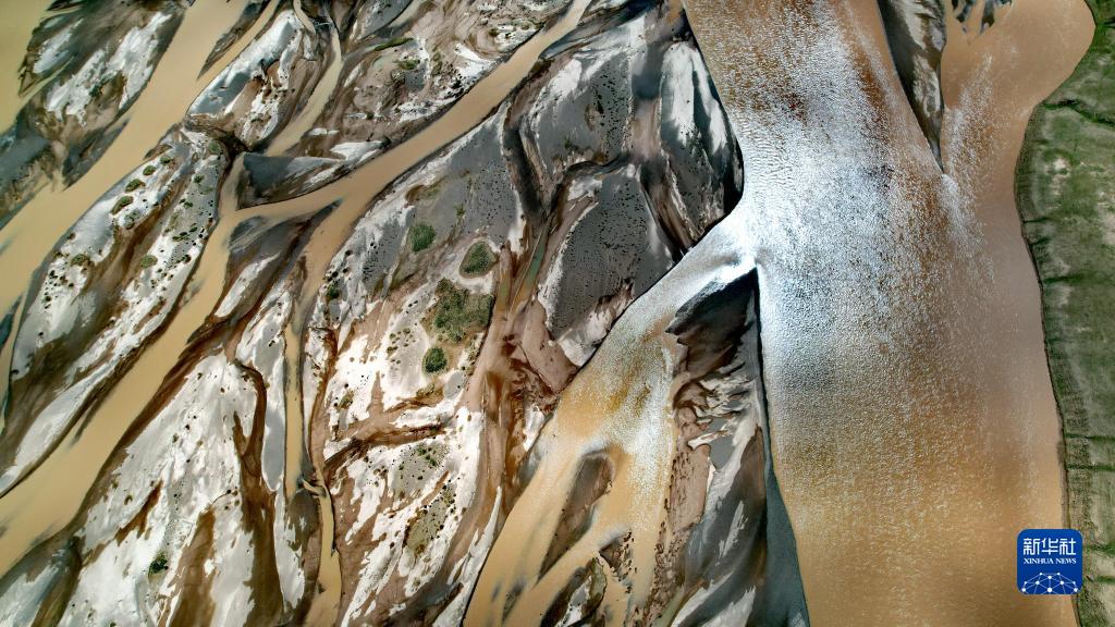 在沱沱河與當(dāng)曲匯合處的囊極巴隴拍攝的辮狀河道局部(7月26日攝,無(wú)人機(jī)照片)。新華社記者 劉詩(shī)平 攝