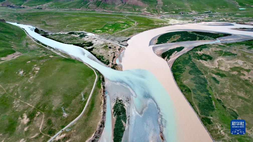 當(dāng)曲支流布曲與尕爾曲會(huì)合處(7月27日攝,無(wú)人機(jī)照片)。新華社記者 劉詩(shī)平 攝