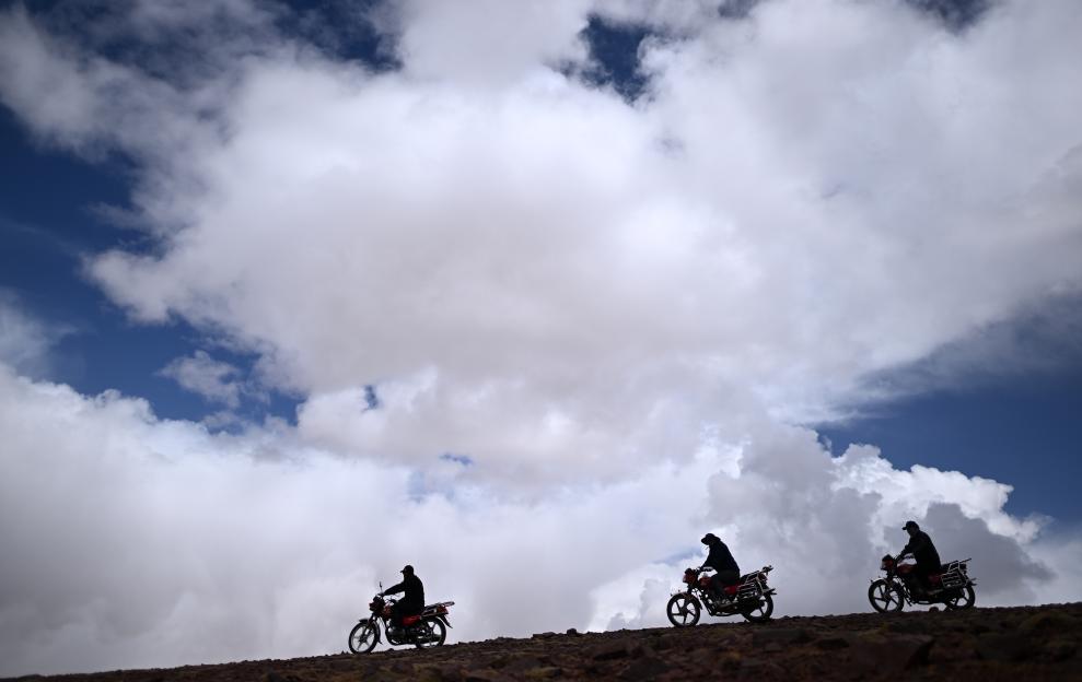 可可西里管理處卓乃湖保護(hù)站隊員在卓乃湖附近騎行巡護(hù)(6月17日攝)。新華社記者 張宏祥 攝