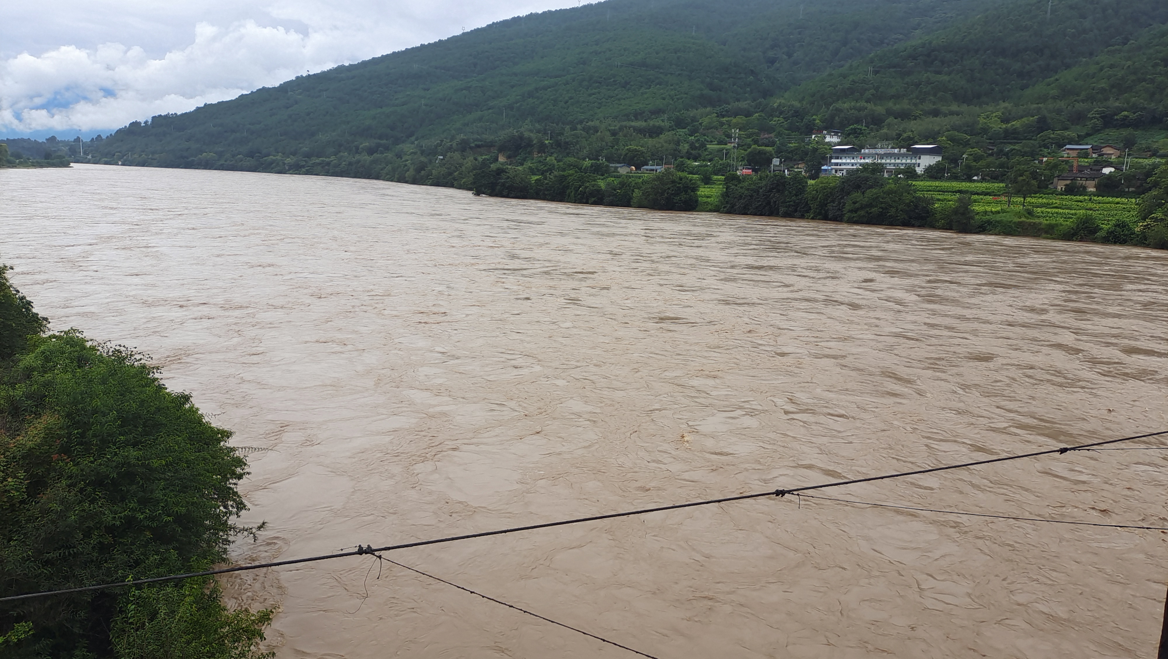 監(jiān)測數(shù)據(jù)顯示,8月21日15時下游金江鎮(zhèn)水文站水位1823.59米,超警戒1.09米,相應(yīng)流量每秒4950立方米。隨著持續(xù)降水過程,金沙江水位持續(xù)上升,上江鄉(xiāng)至金江鎮(zhèn)臨江一線水位已逼近農(nóng)田,江水已沒過低洼地帶的楊柳林。