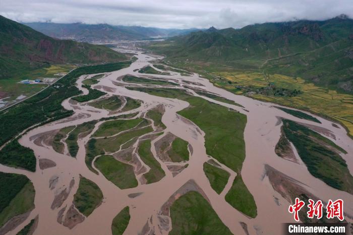 8月22日,航拍青海省玉樹藏族自治州囊謙縣境內的扎曲河網狀水系。扎曲河是瀾滄江上游主要干流之一,縱橫交錯的河水在群山中蜿蜒流淌,形成獨特的高原景觀。