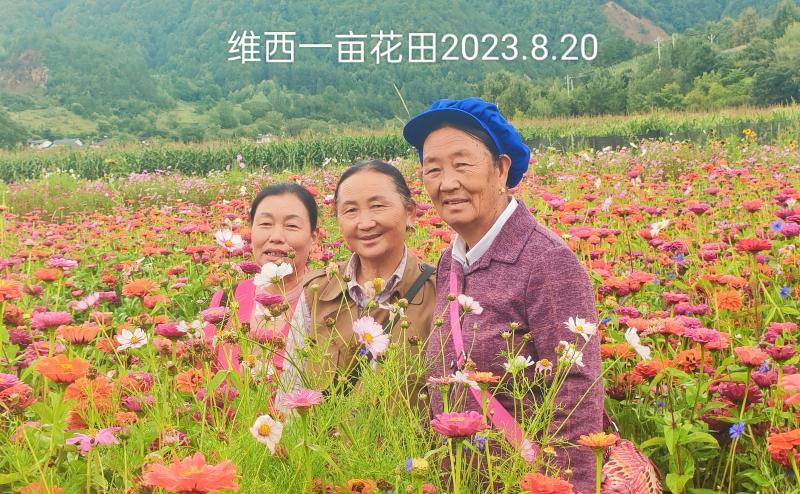 楊躍成把花卉基地起名為“一畝花田”,其實(shí)不止一畝。今年6月中旬開(kāi)始,各種花卉爭(zhēng)奇斗艷、競(jìng)相綻放。金燦燦的萬(wàn)壽菊、金雞菊、格?;ǖ葏R成了花的海洋,成為永春鄉(xiāng)拖枝村的一道靚麗風(fēng)景線,每天都有維西縣城市民及周邊游客前來(lái)看花賞景,特別是周末游客絡(luò)繹不絕。