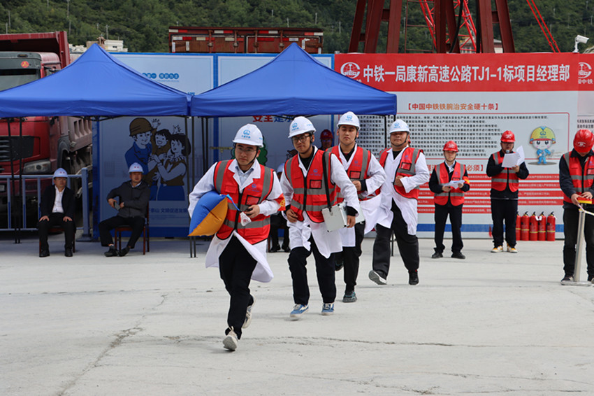 “立即組織施工人員進(jìn)行疏散和警戒,人員不得盲目進(jìn)洞施救……”9月1日,一場(chǎng)隧道坍塌事故綜合應(yīng)急演練在G4218康定至新都橋高速公路項(xiàng)目康定隧道建設(shè)工地舉行。演練模擬隧道施工時(shí)突發(fā)坍塌、工人被困,搶險(xiǎn)人員在指定時(shí)間內(nèi)趕赴事故現(xiàn)場(chǎng),實(shí)施應(yīng)急救援處置。