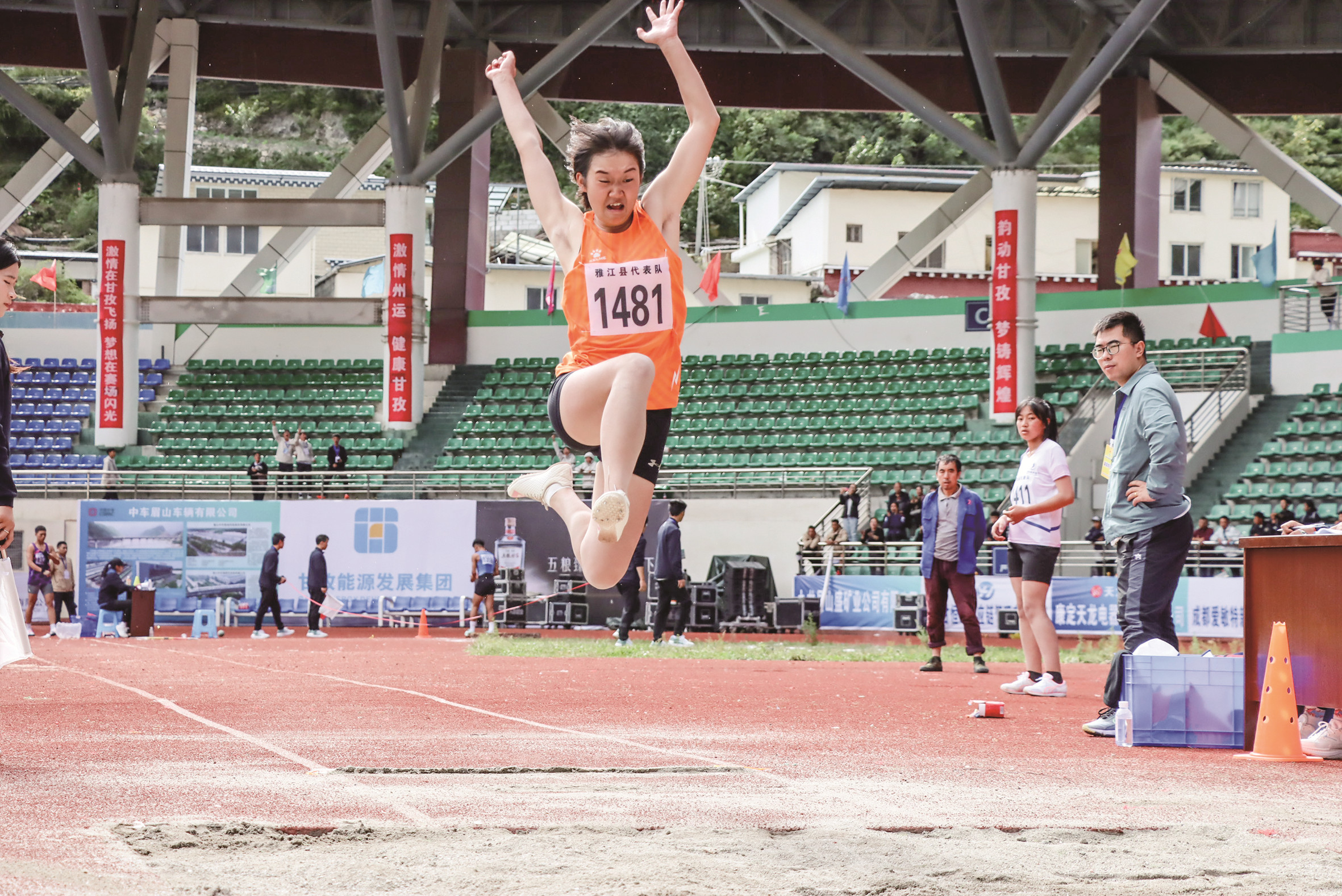 9月13日下午,康定北門體育場內(nèi)歡聲雷動、彩旗飄揚(yáng)。州第四屆運(yùn)動會田徑類比賽中的成人組男子100米預(yù)賽、成人組女子100米預(yù)賽、甲組男子100米預(yù)賽、甲組女子100米預(yù)賽、成人組男子800米決賽、成人組女子800米決賽、甲組男子鉛球決賽和甲組女子跳遠(yuǎn)決賽8個(gè)田徑比賽項(xiàng)目,在這里正式開賽。比賽中,甲組男子鉛球和甲組女子跳遠(yuǎn)項(xiàng)目打破了歷屆州運(yùn)會最高紀(jì)錄。