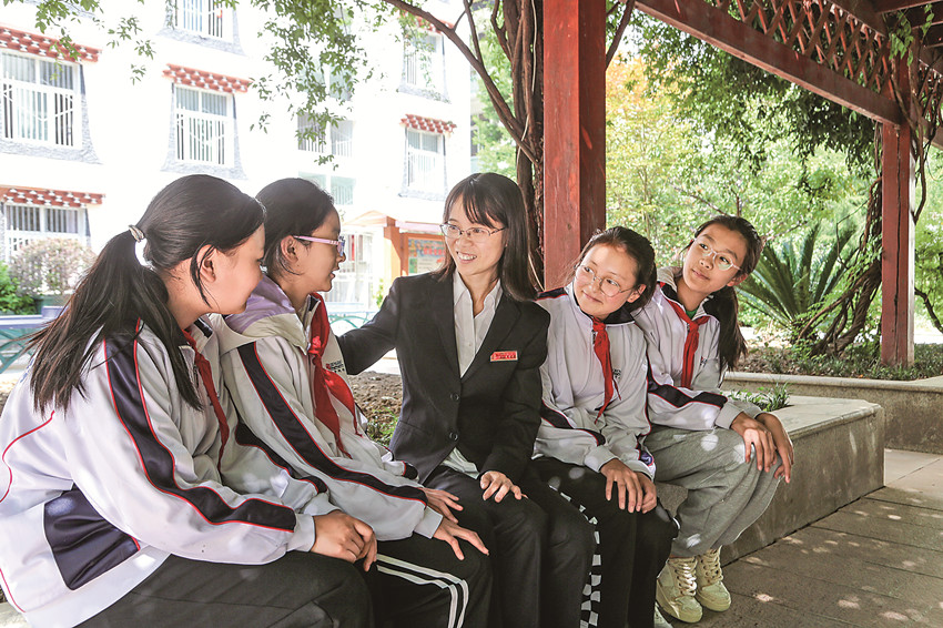 圖為張春老師與學(xué)生們談心。