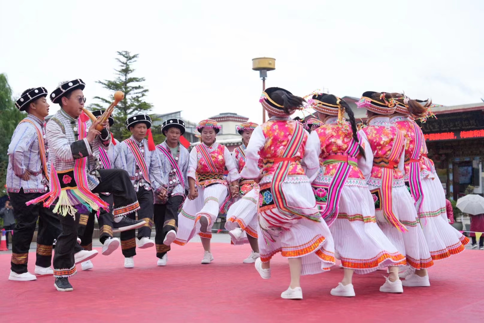9月13日,香格里拉多民族葫蘆笙展演賽活動(dòng)在獨(dú)克宗古城月光廣場(chǎng)舉行。