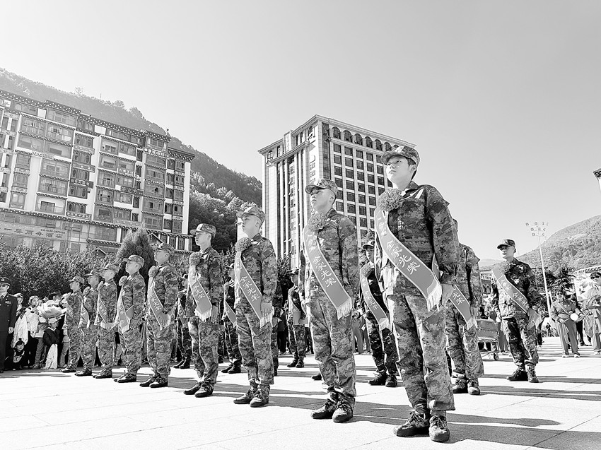 9月15日上午10時,康定市情歌廣場,25名新兵身著迷彩服,胸前佩戴大紅花,肩上披著“一人參軍,全家光榮”綬帶,身姿挺拔、精神抖擻,隊列整齊,意氣風發(fā)。[詳細]
