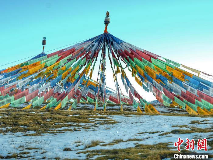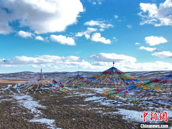 圖為青海省玉樹州曲麻萊縣麻多鄉(xiāng)約古宗列盆地內(nèi)的經(jīng)幡。 劉洋 攝