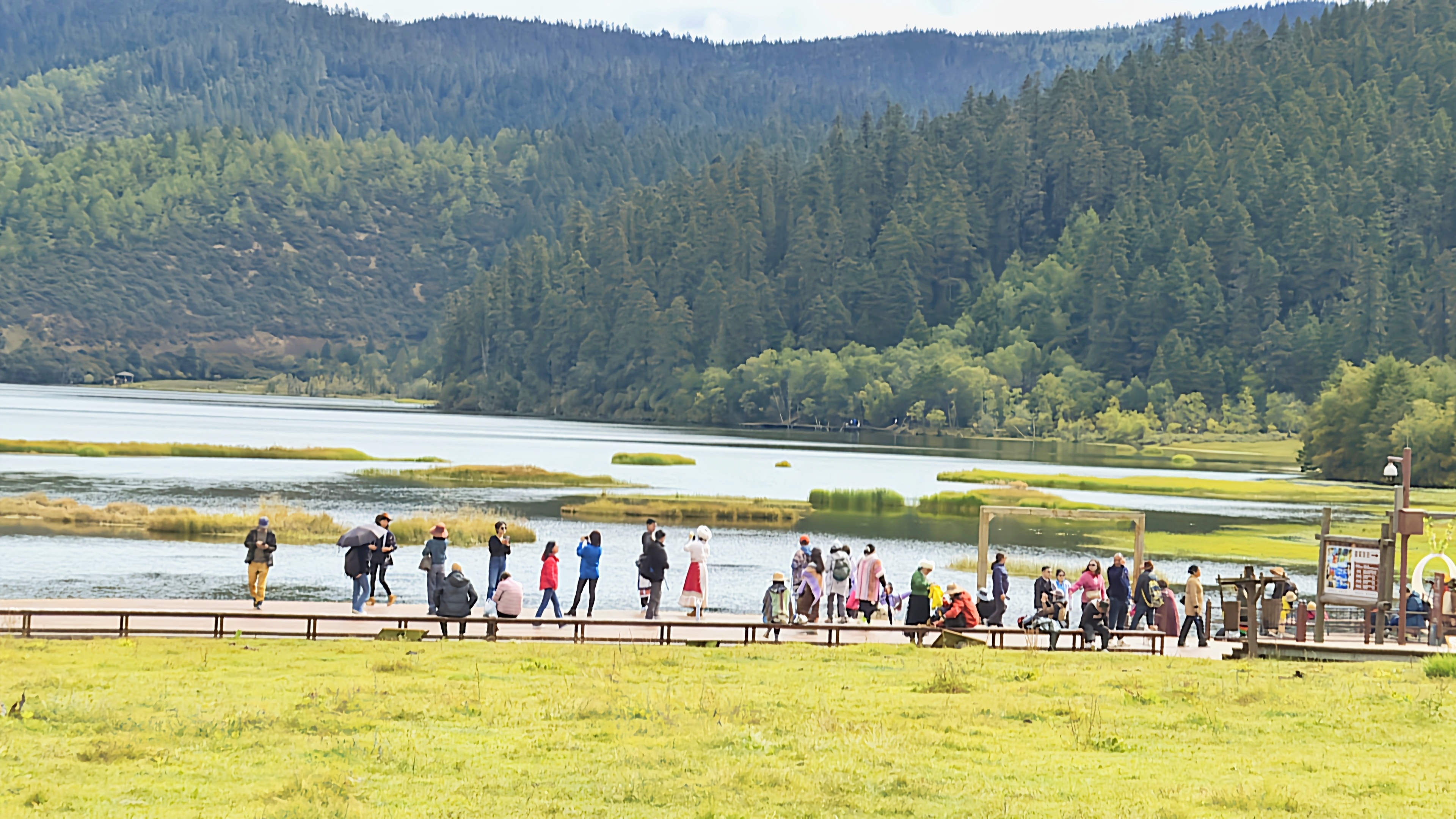 秋日的普達(dá)措國(guó)家公園層林盡染、色彩斑斕,高山草甸、原始森林與湖泊濕地構(gòu)成了一幅幅美麗的畫(huà)卷,屬都湖棧道上人群熙熙攘攘。“我是第一次來(lái)香格里拉旅游,香格里拉給我的感覺(jué)就是,這里的生態(tài)環(huán)境保護(hù)得很好,綠水青山,很值得來(lái)游玩?!庇慰退闻勘硎?。