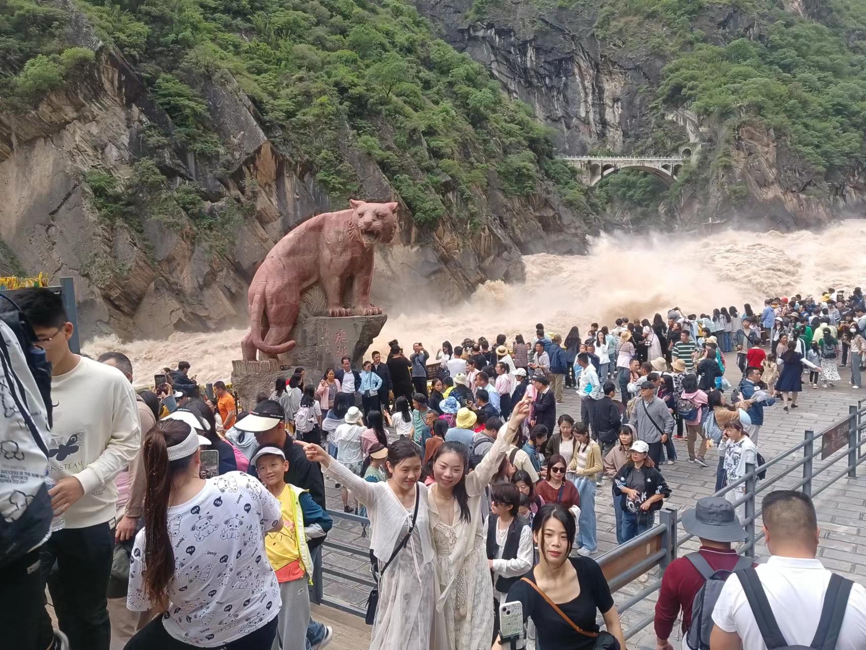 日前,虎跳峽景區(qū)游人爆滿,各項(xiàng)旅游接待指標(biāo)全面提升。“目前游客人數(shù)還在持續(xù)攀升,預(yù)計(jì)國(guó)慶節(jié)中期到達(dá)頂峰?!本皡^(qū)工作人員介紹道。假期前三天景區(qū)已接待游客3.11萬(wàn)人。
