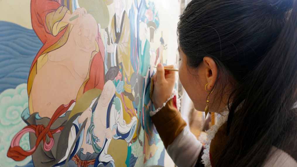 “以前只在展館里欣賞過(guò)唐卡作品,沒(méi)想到還可以親自繪制,這樣的旅游體驗(yàn)很特別。”北京游客孫女士拿著畫(huà)筆,在熱貢桑杰唐卡畫(huà)院體驗(yàn)繪制唐卡。