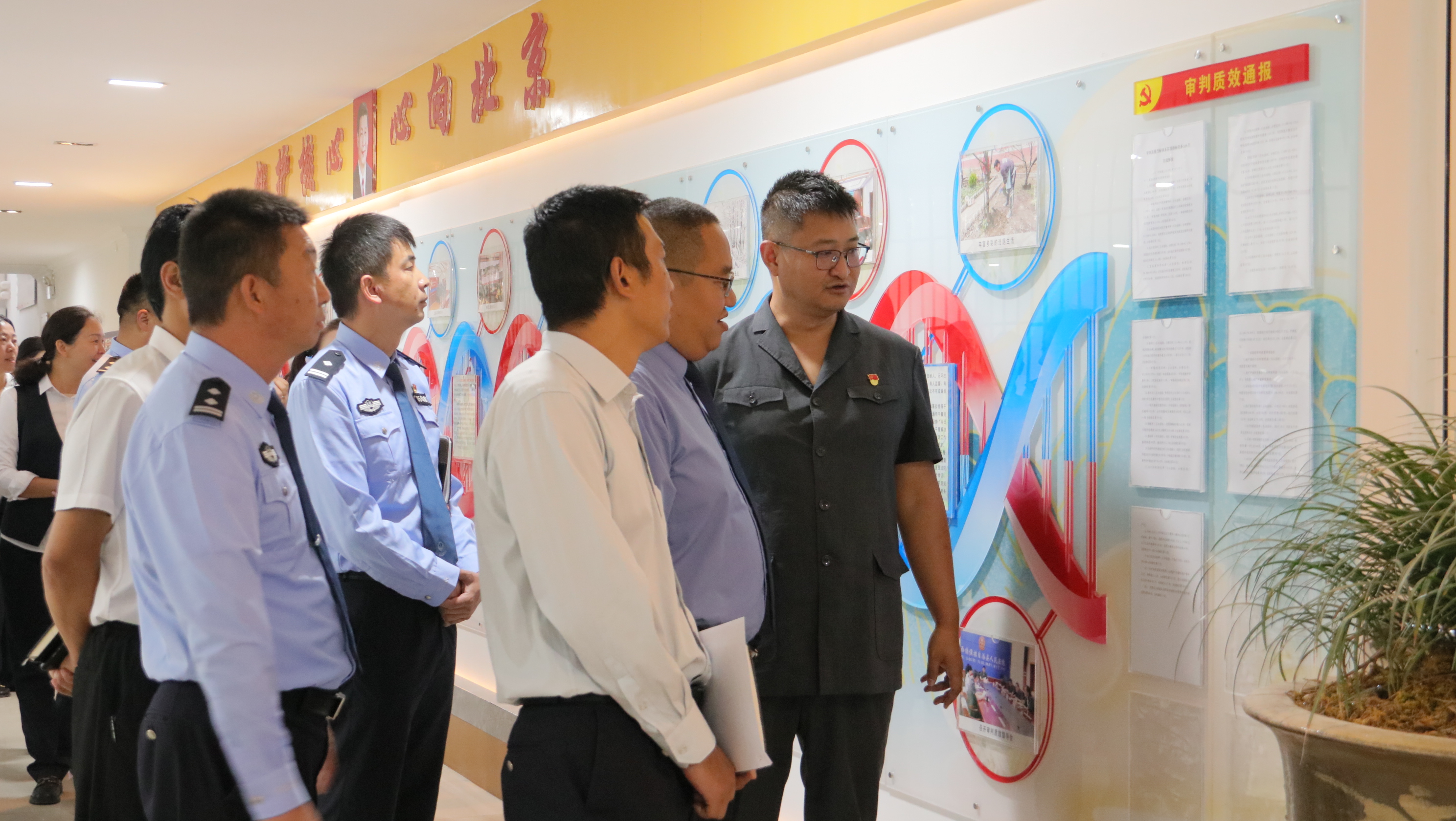 與法同行“零距離”。升旗儀式后,全體同志跟隨講解員進(jìn)入審判大樓,參觀了縣人民法院訴訟服務(wù)中心、黨建文化長(zhǎng)廊,詳細(xì)了解了“蘭韻傈鄉(xiāng)·紅色天平”黨建文化品牌建設(shè)的特色亮點(diǎn),通過參觀學(xué)習(xí)打開了政法系統(tǒng)黨組織互幫互學(xué)、共創(chuàng)共贏的新局面。并現(xiàn)場(chǎng)體驗(yàn)?zāi)M法庭,將法院庭審的真實(shí)場(chǎng)景通過情景再現(xiàn)的形式,直觀地展示給在場(chǎng)的黨員干部及工作人員,進(jìn)行“以案說法、以案示警”。通過“沉浸式體驗(yàn)”,讓全體黨員親身感受了審判工作氛圍,引導(dǎo)大家進(jìn)一步筑牢政治忠誠(chéng),強(qiáng)化法治思維,牢記初心使命,立足崗位職責(zé),扎實(shí)推進(jìn)全縣政法工作再上新臺(tái)階。