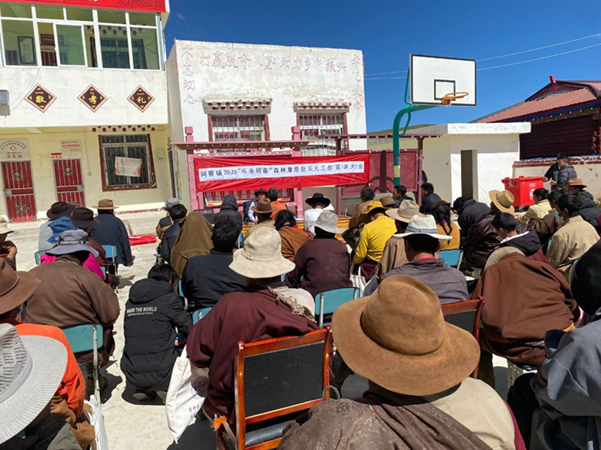 入秋以來,隨著氣溫下降、濕度減弱,森林、草原、濕地的植被含水率降低、干燥易燃,戶外旅游、農(nóng)事用火等野外火源管理難度進(jìn)一步增大,也讓秋冬季森林草原防火工作壓力陡增?!按蠹乙欢ㄒ涀?,進(jìn)山不要帶火種??吹接谢稹⒂袩燅R上上報(bào)……”在白玉縣阿察鎮(zhèn)開展的2023年“今冬明春”森林草原防滅火政策宣講大會(huì)上,宣講員用通俗易懂的本土方言向村民們反復(fù)叮囑防火注意事項(xiàng)。連日來,該鎮(zhèn)分別組織人員深入轄區(qū)四個(gè)行政村開展宣講大會(huì),宣傳森林草原防滅火政策知識(shí),同時(shí)以案示警,通過宣講森林草原火災(zāi)典型事例,向群眾普及違反森林草原防滅火相關(guān)法律法規(guī)的嚴(yán)重后果,著力提升大家的防火安全意識(shí),最大限度地預(yù)防和減少森林火災(zāi)的發(fā)生。