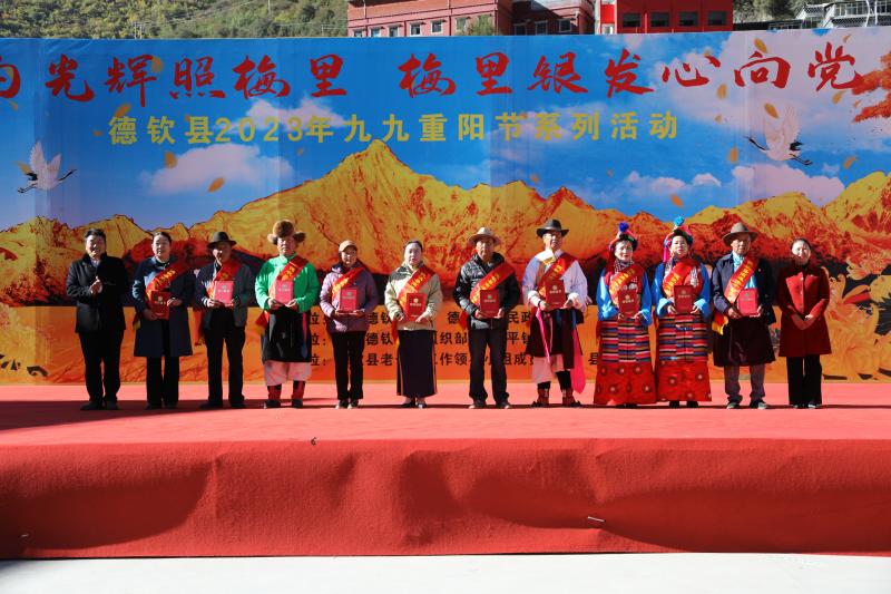 活動(dòng)中,德欽縣縣委、政府負(fù)責(zé)人分別為2023年德欽縣“黨的光輝照梅里 梅里銀發(fā)心向黨”重陽節(jié)系列慶祝活動(dòng)致辭,并通報(bào)了德欽縣2023年經(jīng)濟(jì)社會(huì)發(fā)展情況。