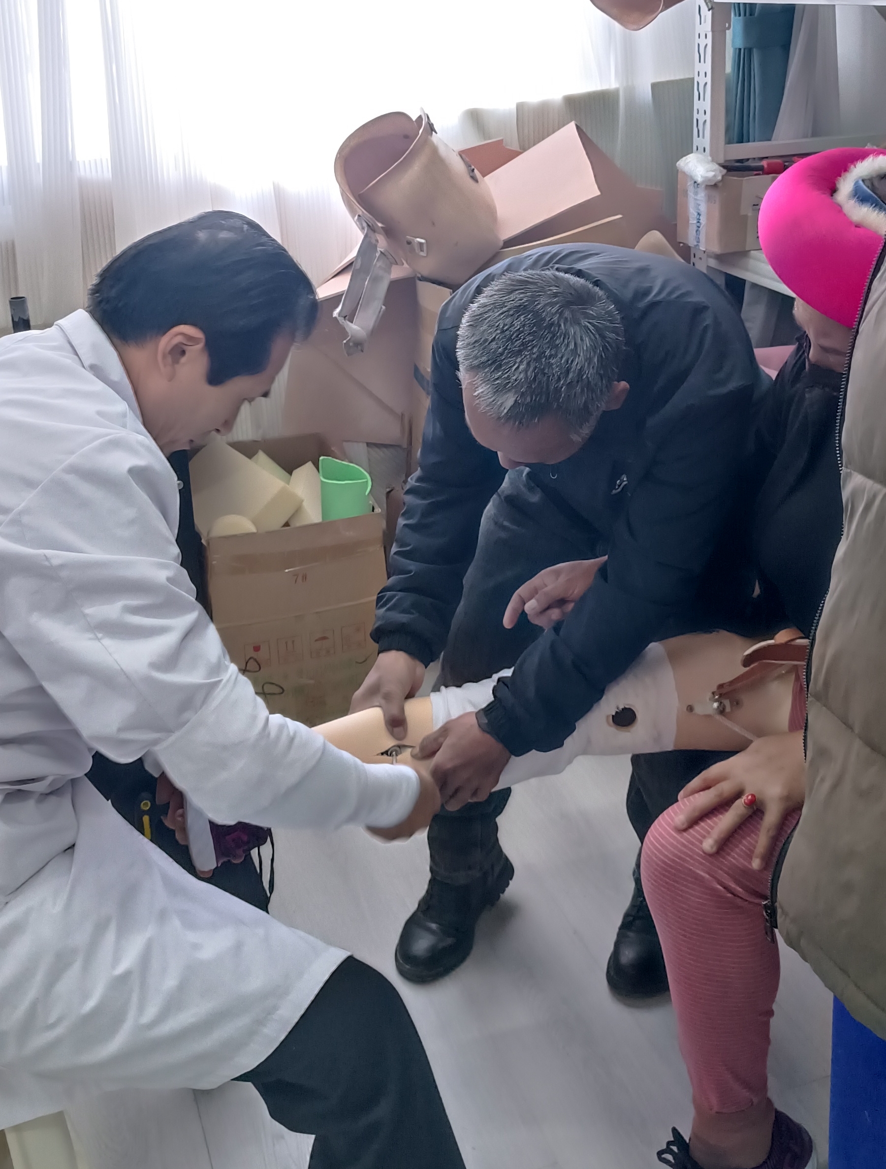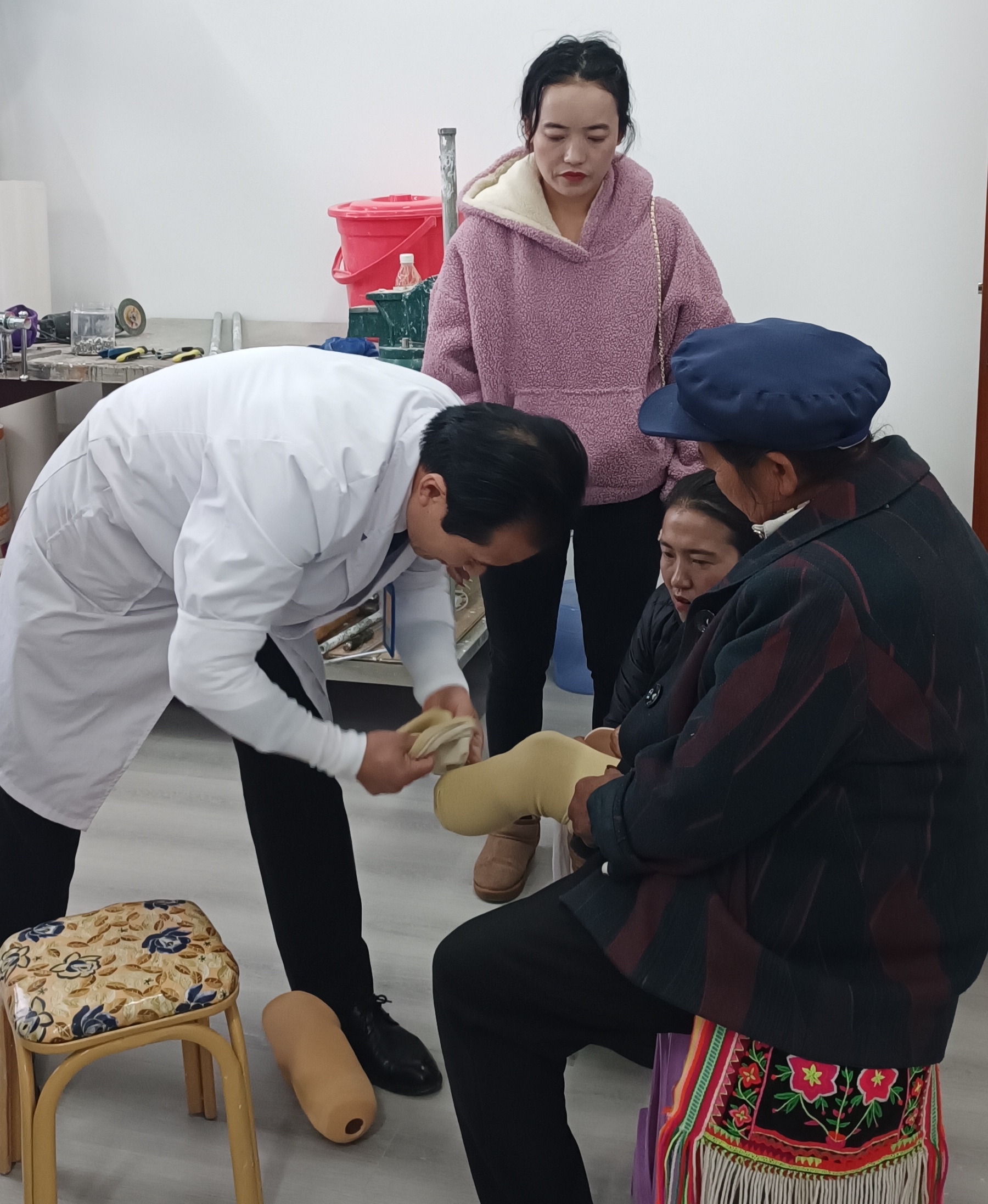 近日,在州康復(fù)中心,隨著30名肢體殘障群體的假肢適配成功,2023年省級(jí)殘疾人事業(yè)彩票公益金助聽器、假肢適配服務(wù)項(xiàng)目圓滿結(jié)束。據(jù)了解,該項(xiàng)目在今年還為我州300名聽力殘障群體免費(fèi)適配助聽器。圖為醫(yī)生為肢體殘障人士適配假肢。