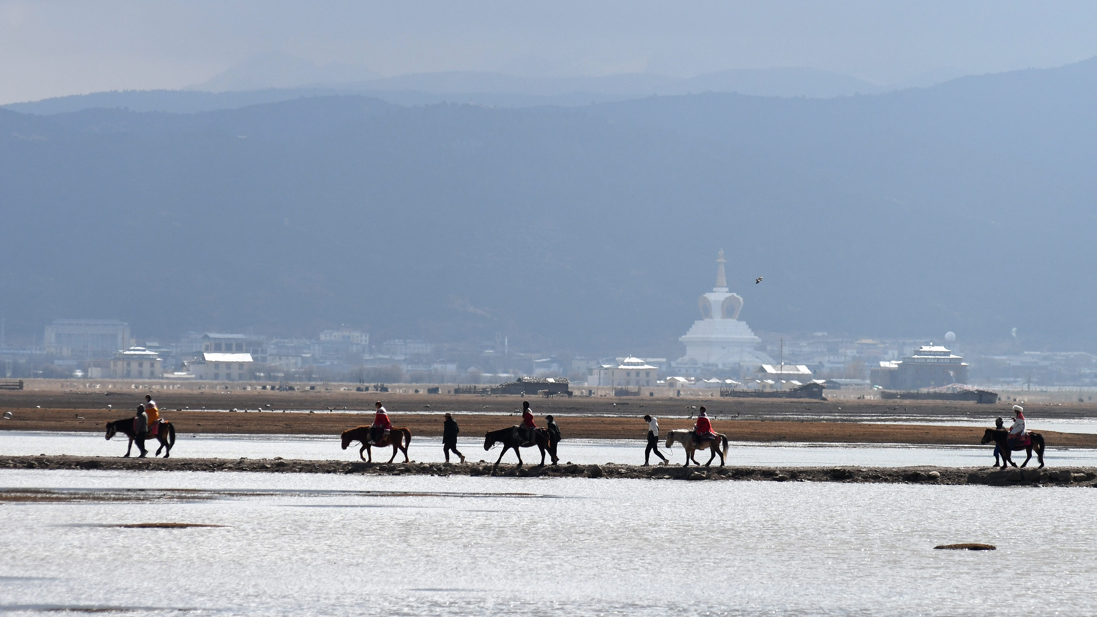 冬季的普達措景區(qū),林濤載水聲,藍天伴幽湖,寧靜無喧囂;冬季的納帕海,皚皚白雪成為了黑頸鶴、黑鸛、白尾海雕、斑頭雁等珍稀的鳥類自由作畫的繪本;冬季的噶丹·松贊林寺,當?shù)谝豢|陽光灑向寺廟的金頂,若隱若現(xiàn)的云霧和裊裊桑煙下藏著人間仙境;冬季的獨克宗古城,綿綿白雪裝飾著藏式民居,穿著民族服裝的人們踏著青石板路緩緩走過,美好而生動。