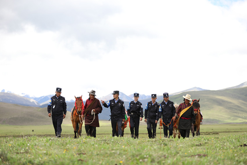 圖為省級(jí)“楓橋式公安派出所”——理塘縣公安局高城派出所民警在巡邏途中與牧民交談。 州公安局 供圖