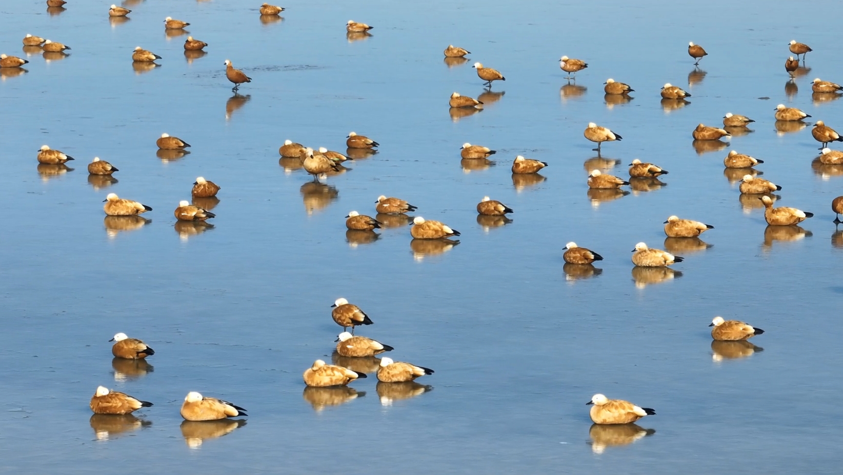 青海茫崖:數(shù)千只赤麻鴨在尕斯庫勒湖濕地休憩