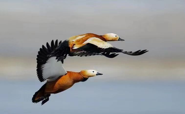赤麻鴨起飛。王小炯 攝