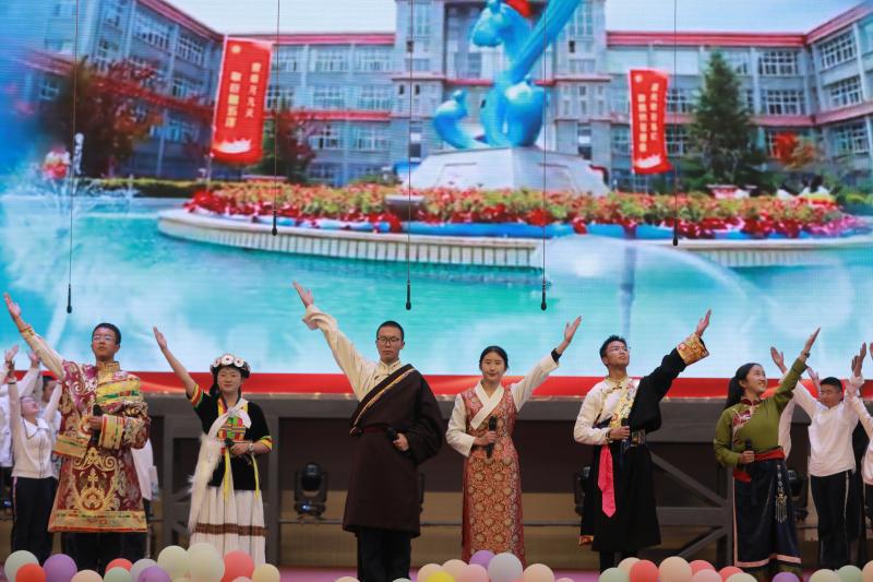 活動中,受邀領(lǐng)導(dǎo)嘉賓、廣大師生共同觀看了州民中40年發(fā)展歷程紀(jì)實(shí)片《四十芳華桃李情》、民族團(tuán)結(jié)專題片《團(tuán)結(jié)花開香溢雪域》。州民中師生及校友、州歌舞團(tuán)演員等還為大家?guī)砹司实母栉璞硌?,表達(dá)了內(nèi)心的喜悅,為學(xué)校送上祝福。