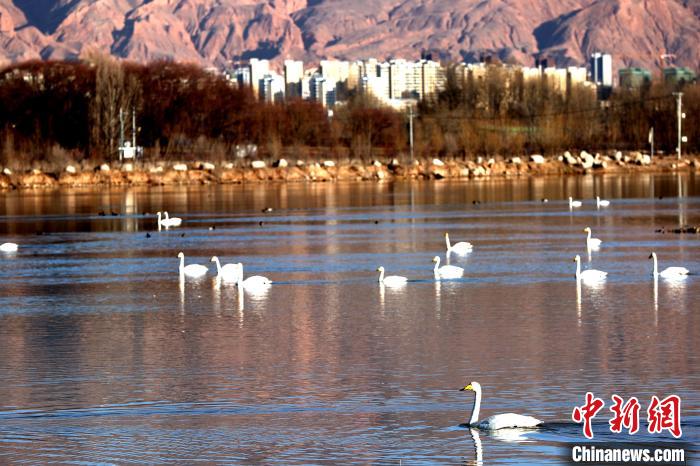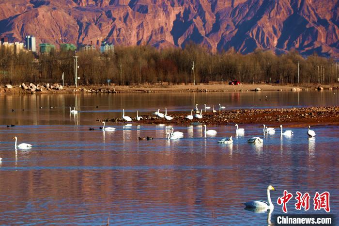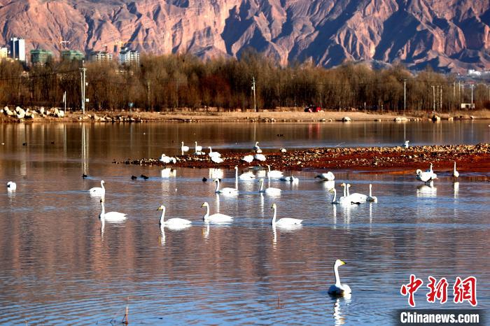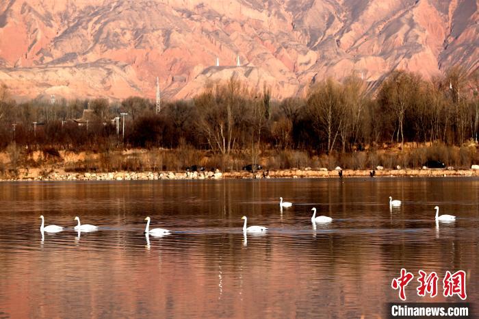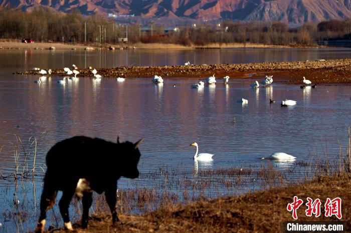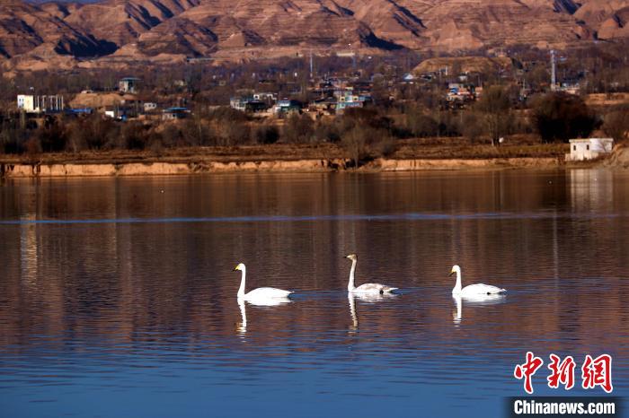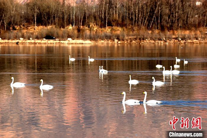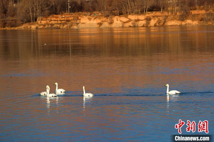 青海:野生大天鵝群在黃河越冬高原冬日添靚景