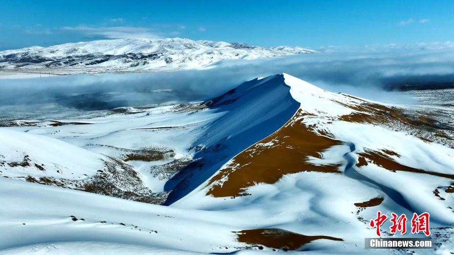 12月中旬,高原青海迎來新一輪寒潮。在青海湖北岸的青海省海北藏族自治州海晏縣,攝影師在金沙灣拍攝到雪落金沙的冬日景色。航拍鏡頭下沙與雪的色彩明暗交錯、波瀾起伏,宛如大自然為大地“咖啡”“拉花”,藍白交織的純凈讓人心曠神怡。雪后初晴,云河在沙丘間流動,時而隨著氣流“流入”青海湖,沙丘背后的蔚藍湖水,也讓景色變得奇幻優(yōu)美。青海湖是中國最大的內陸高原咸水湖,是維系青藏高原東北部生態(tài)安全的重要水體,也是控制西部荒漠化向東蔓延的天然屏障。